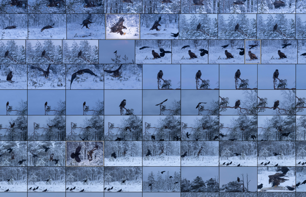 Pelkkien lukujen perusteella kuvamäärä voi kuulostaa suurelta, mutta käytännössä se on täysin perusteltua, kun kuvataan suuria petolintuja nopeasti muuttuvissa tilanteissa.